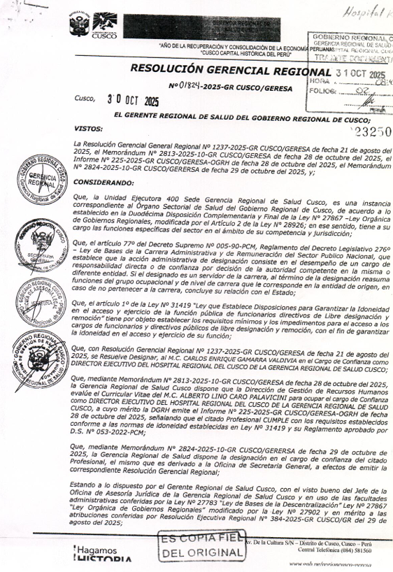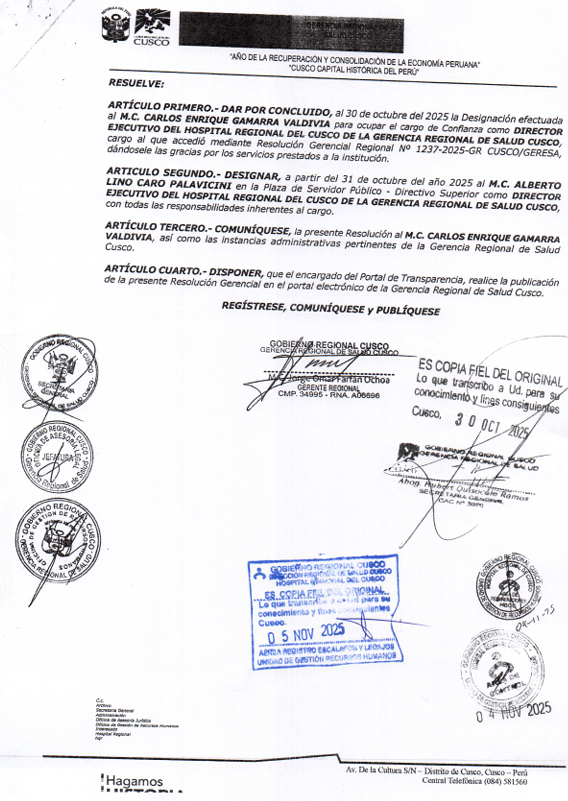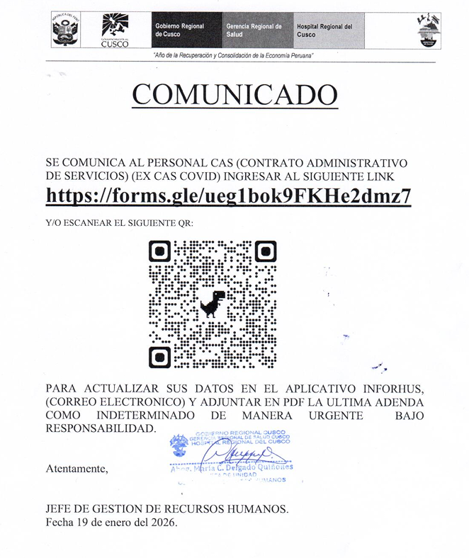 El Hospital Regional del Cusco, es un establecimiento de salud, con categoría nivel III-1 de acuerdo a la Resolución Directoral RD-N.º 508-2005-DRSC-DEGDRRHH. Es un órgano desconcentrado de la Dirección Regional de Salud Cusco.