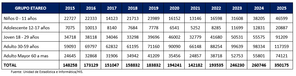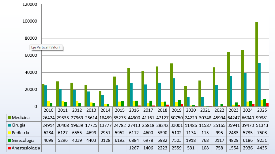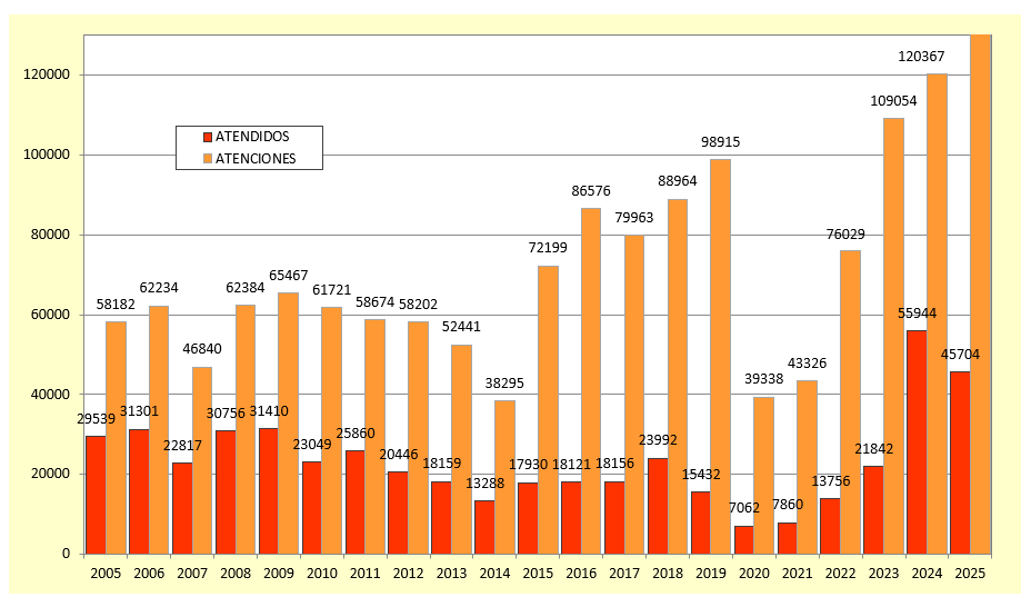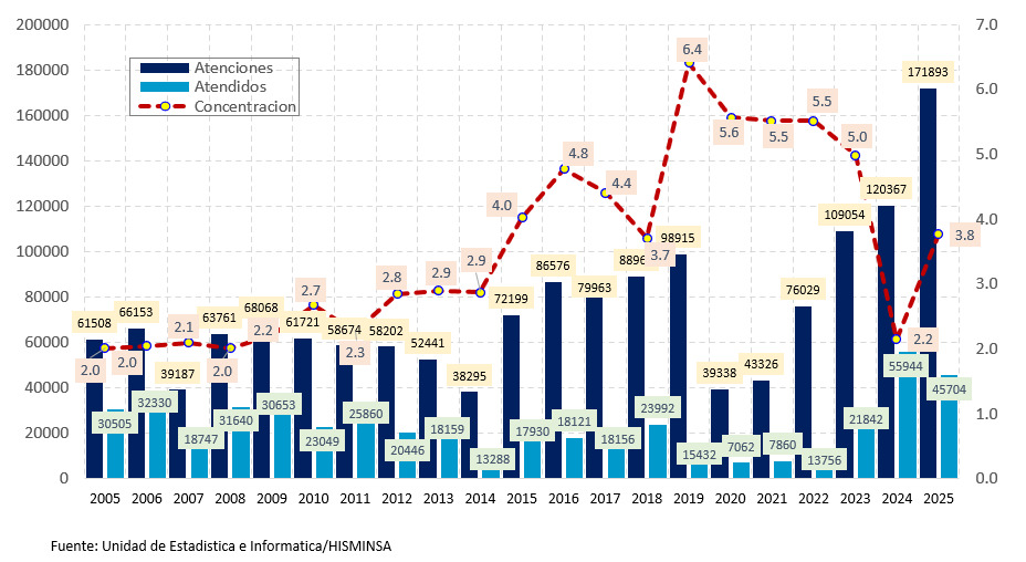 Producción de Consulta Externa Atendidos - Atenciones 2005-2025.