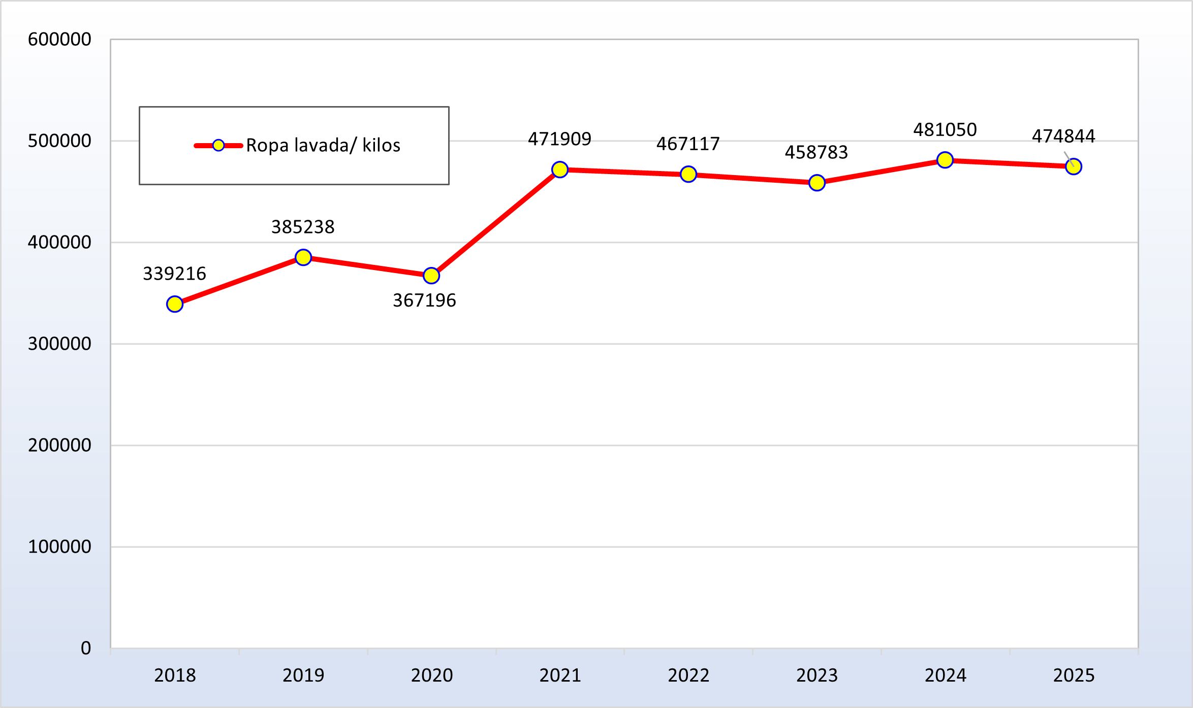 Cantidad de Ropa Lavada Según Años 2018 - 2025